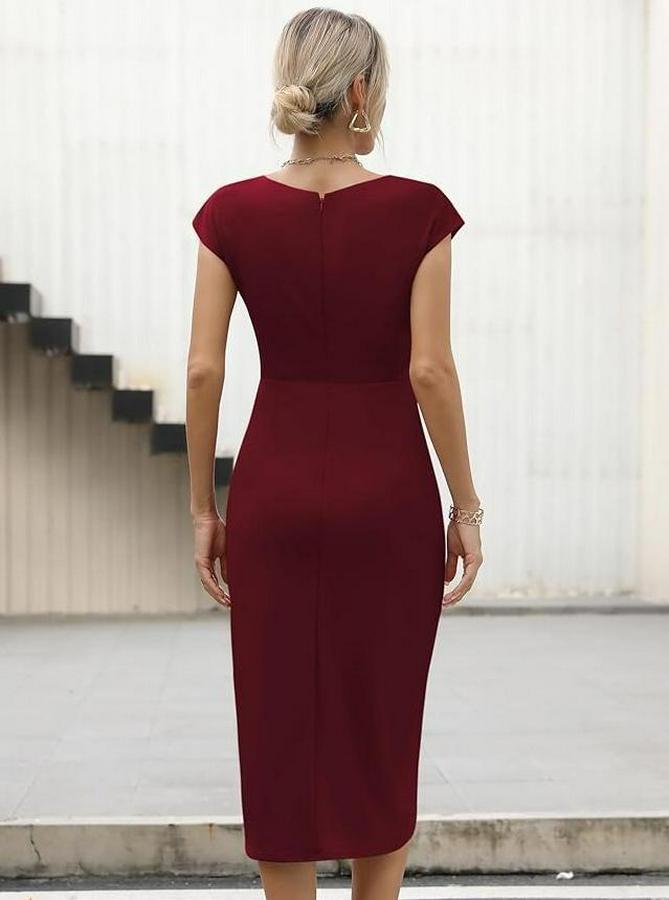 Kadın Yarım Ay Kollu Bisiklet Yaka Yandan Drapeli Ithal Krep Elbise