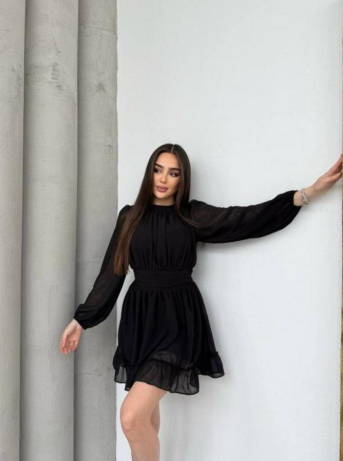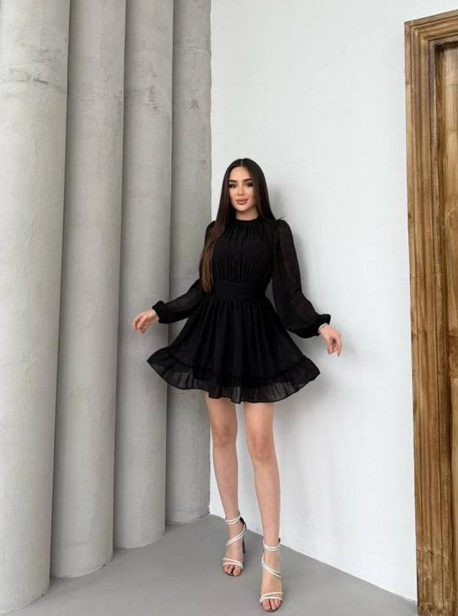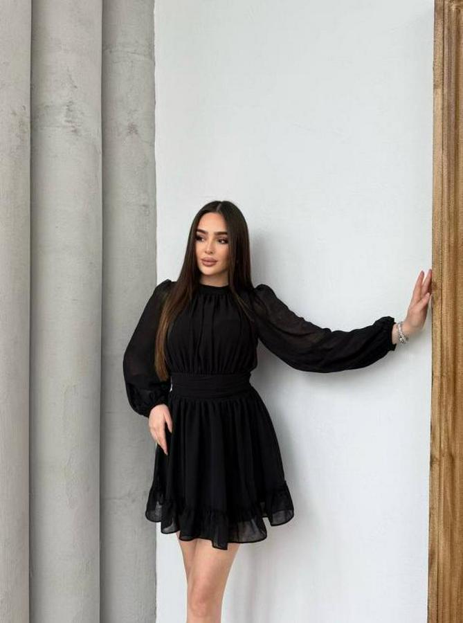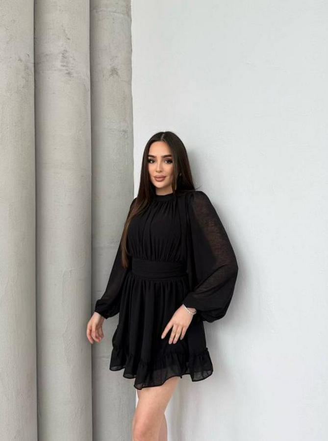 AnasayfaTüm ÜrünlerElbiseYarım Balıkçı Yaka Kolları Transparan Astarlı Full Şifon Elbise