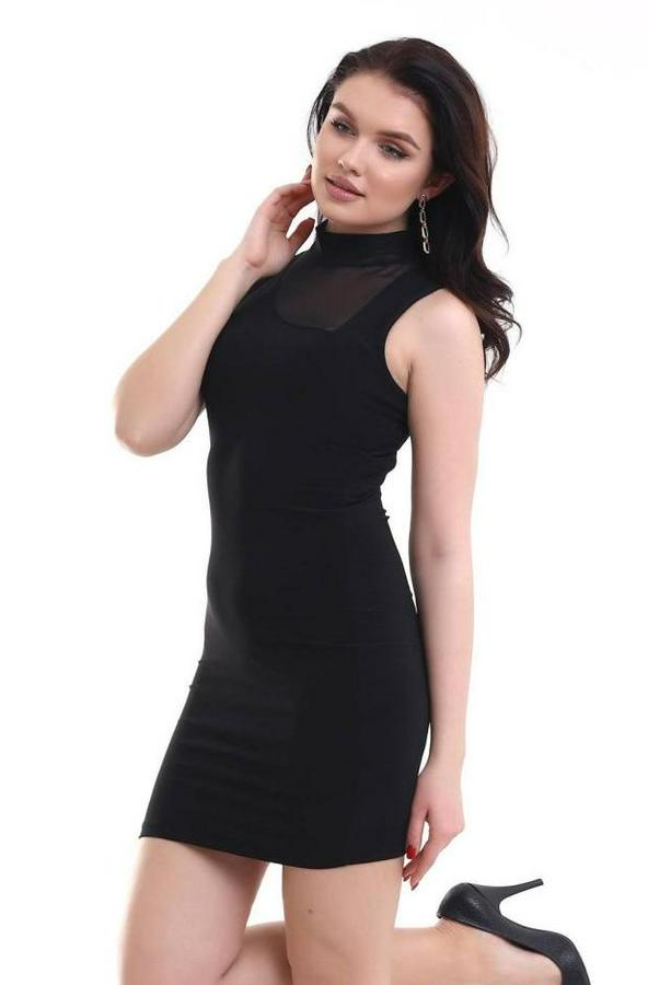 Yarım Balıkçı Yaka Tül Detaylı Sandy Kumaş Fırsat Ürün Diz Üstü Elbise