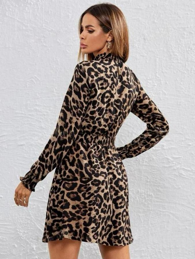 AnasayfaTüm ÜrünlerElbiseYarım Balıkçı Yaka Uzun Kollu Leopar Desen Mini Elbise