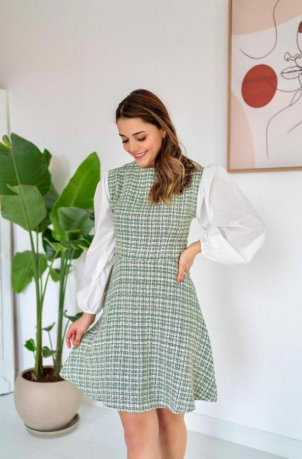 Yeşil Desenli Elbise