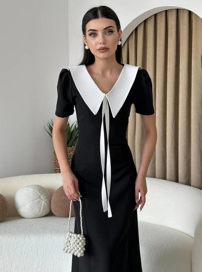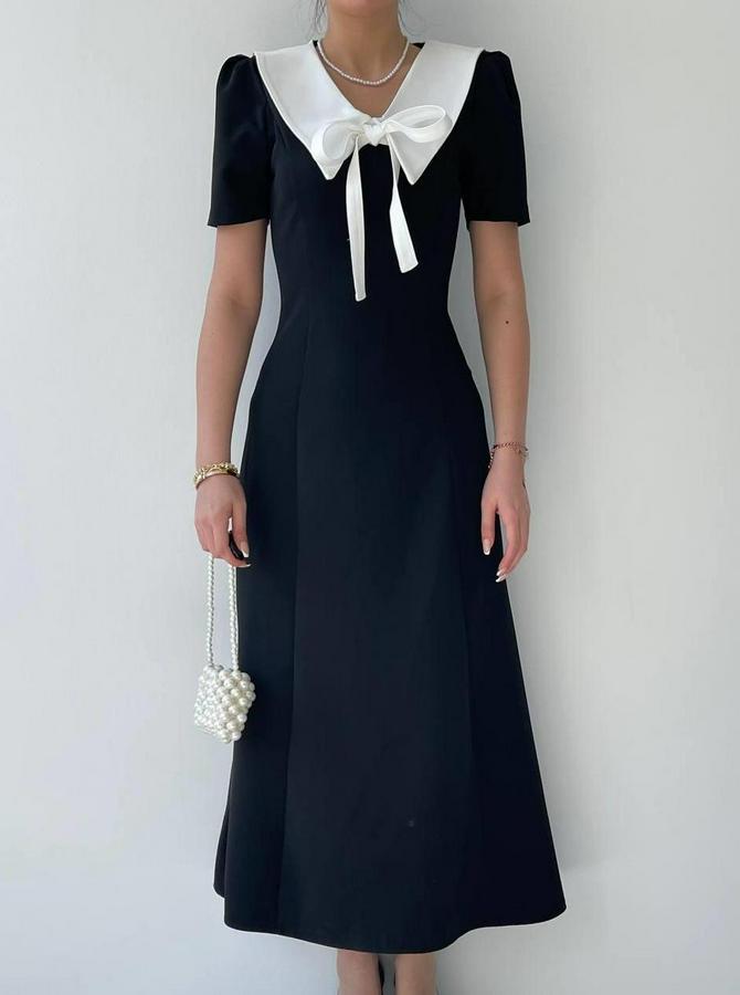 AnasayfaTüm ÜrünlerElbiseZerra Yaka Kurdale Detay Elbise