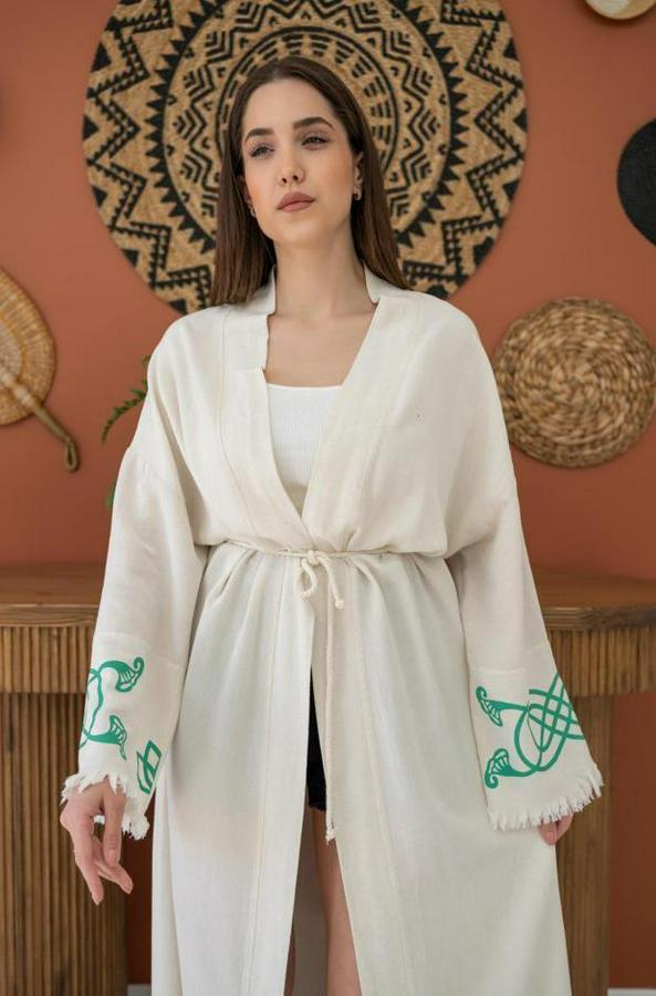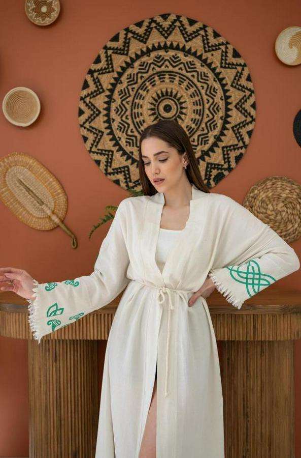 Kahverengi Baskı Detay Keten Sabahlık