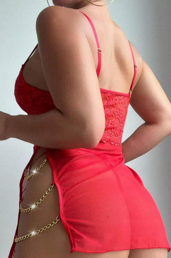Kırmızı Özel Tasarım Zicir Aksesuarlı Gecelik 15576
