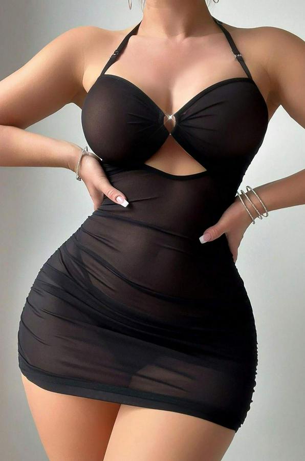 Siyah Transpan Tül Gecelik