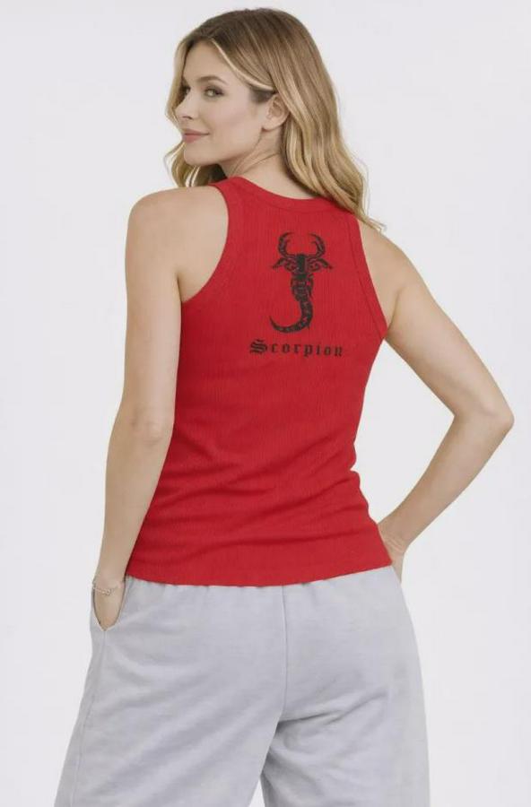 Fitilli Atlet Sıfır Yaka Slim Fit Arka Baskılı Spor Atlet - Kırmızı