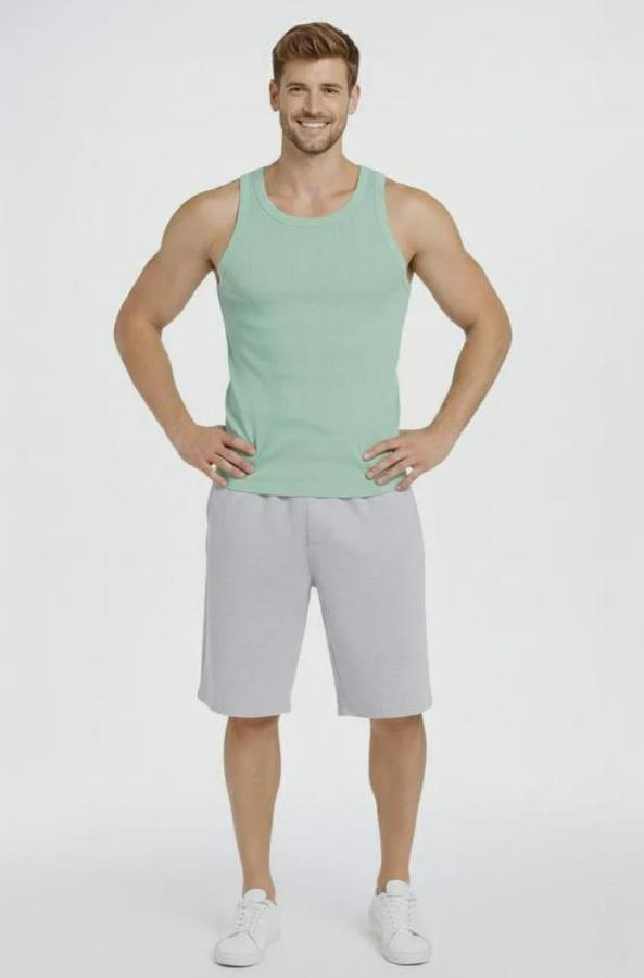 Erkek Fitilli Atlet Sıfır Yaka Slim Fit Arka Baskılı Spor Atlet - Mint Yeşili
