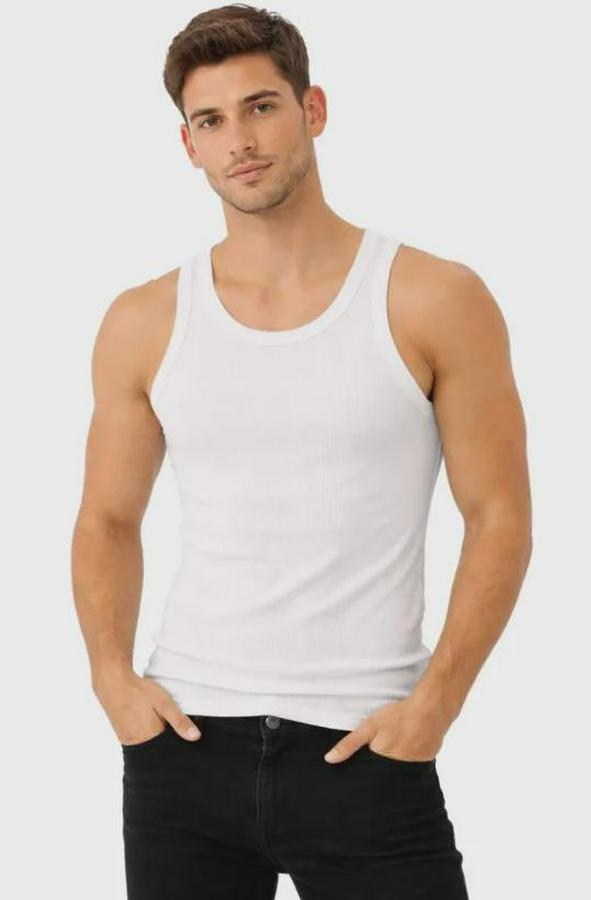 Erkek Fitilli Likralı Kaşkorse Atlet Vücuda Oturan Basic Şıklık - Beyaz