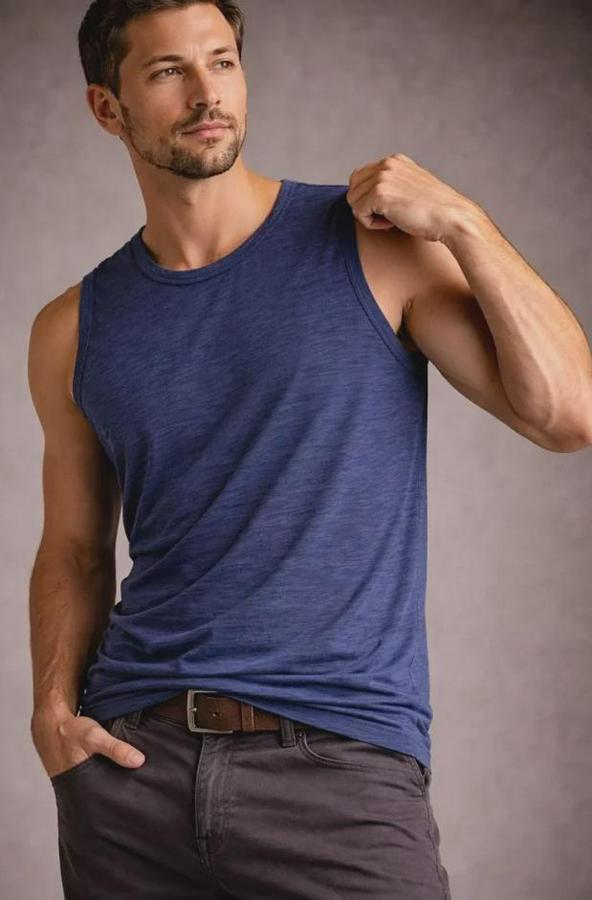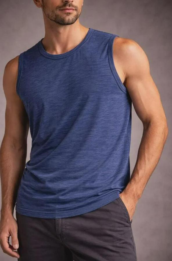 Erkek Flamlı Kumaş Sıfır Kolsuz Atlet Basic Spor Üst, Günlük Ve Fitness Kullanımına Uygun - İndigo