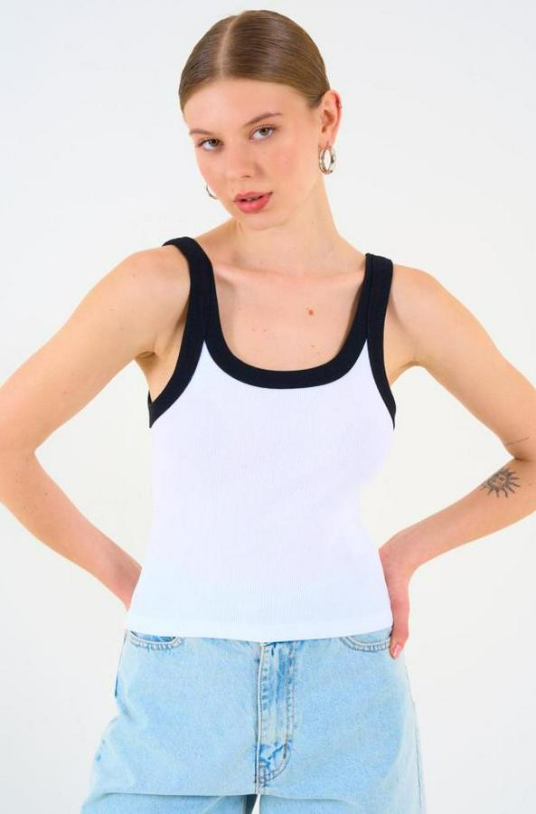 İki Renkli Atlet - Siyah-Beyaz
