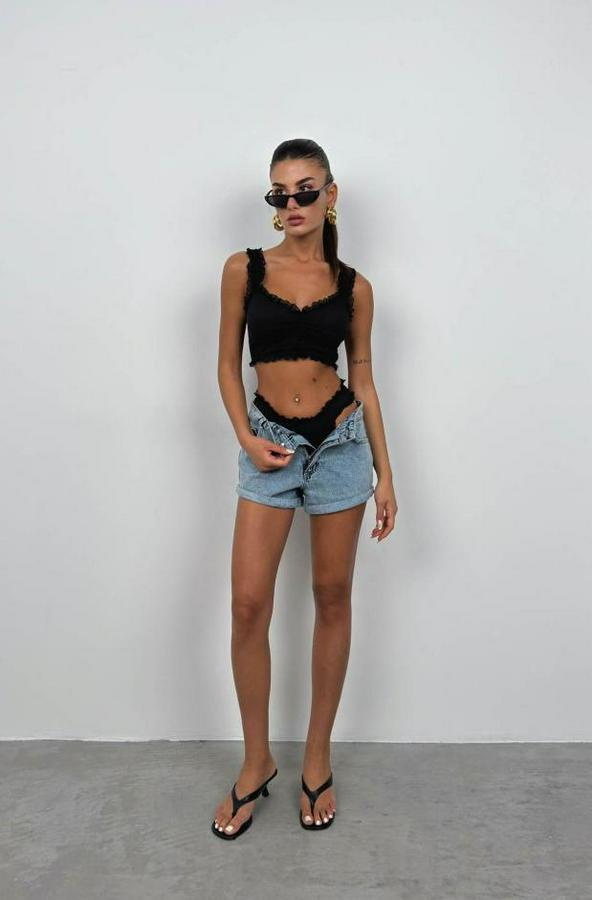 Modelin Ölçüleri: Boy:165, Kg:55, Göğüs:90, Bel:72, Kalça: 100