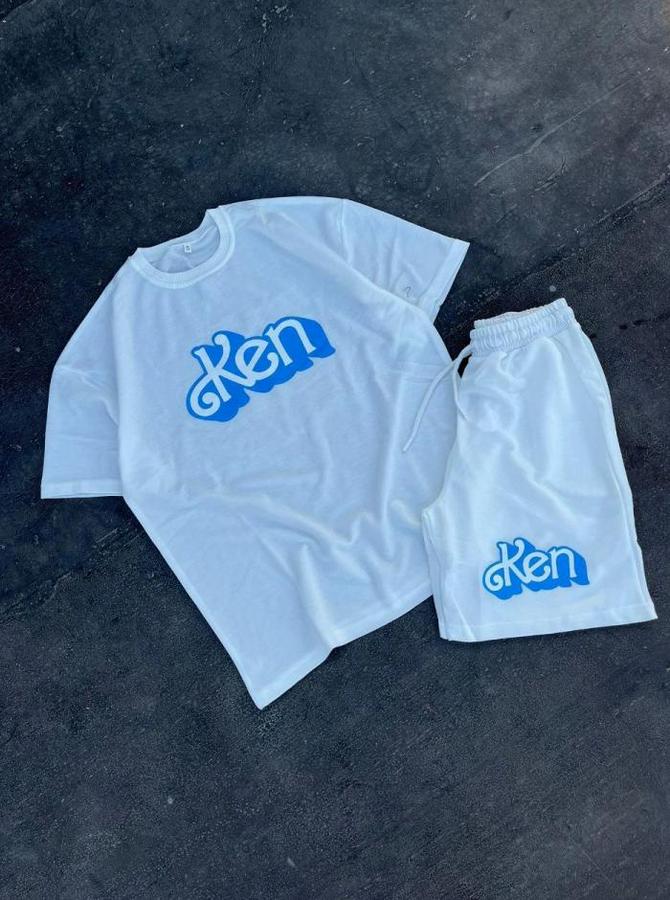 Erkek Baskılı İkili Şort Takım - Beyaz