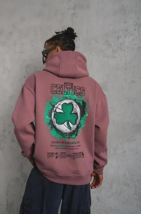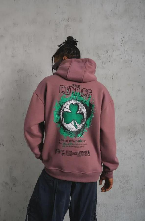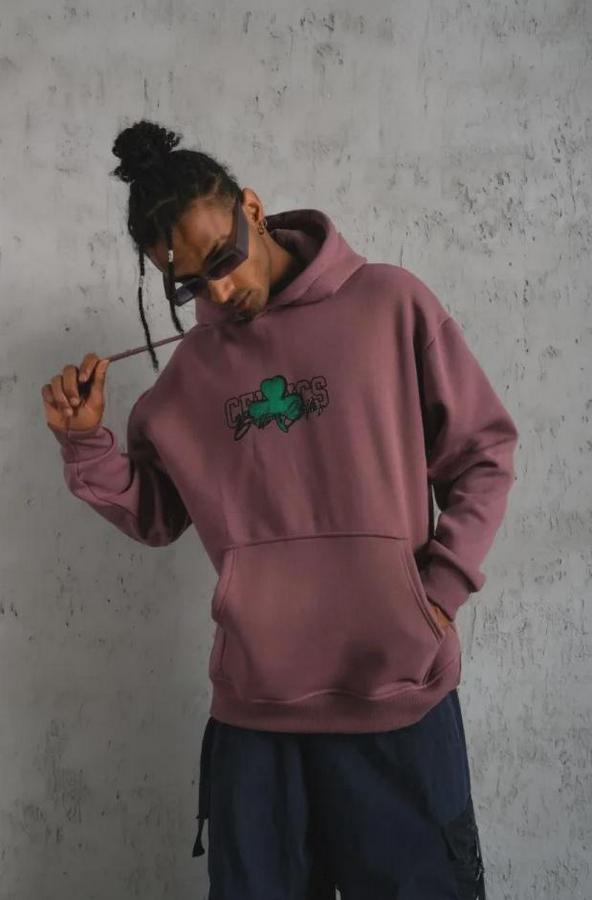 Erkek Baskılı Kapüşonlu Ve Kordon İpli Sweat - Gül Kurusu