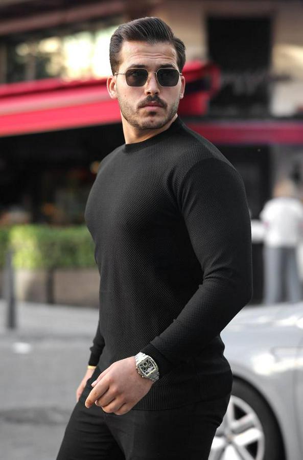 Bisiklet Yaka Örme Uzun Kollu Triko