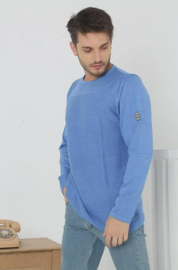 Erkek Biskilet Yaka Kolu Armalı - Mavi