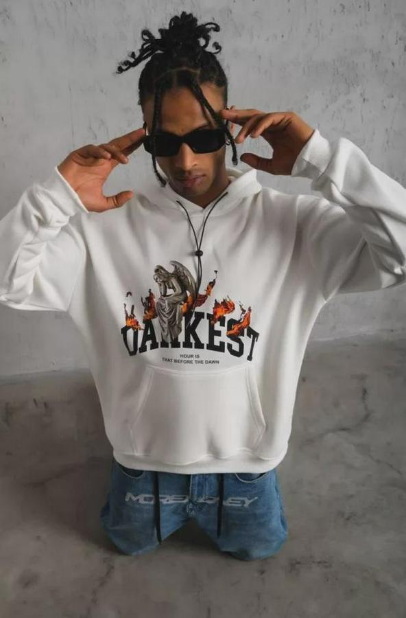 Erkek DANKES Baskılı Kapüşonlu Sweat - Beyaz