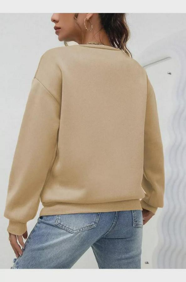 Düz Bisiklet Yaka Sweat - Bej