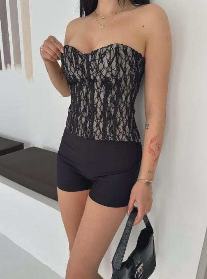AnasayfaTüm ÜrünlerKarışıkFermuarlı Dantel Korse Straplez Bustiyer Transparan Şık Top