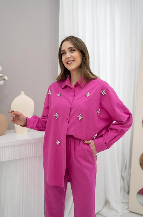 AnasayfaTüm KategorilerGiyimKarışıkFuşya Klasik Taşlı Keten Takım Takım