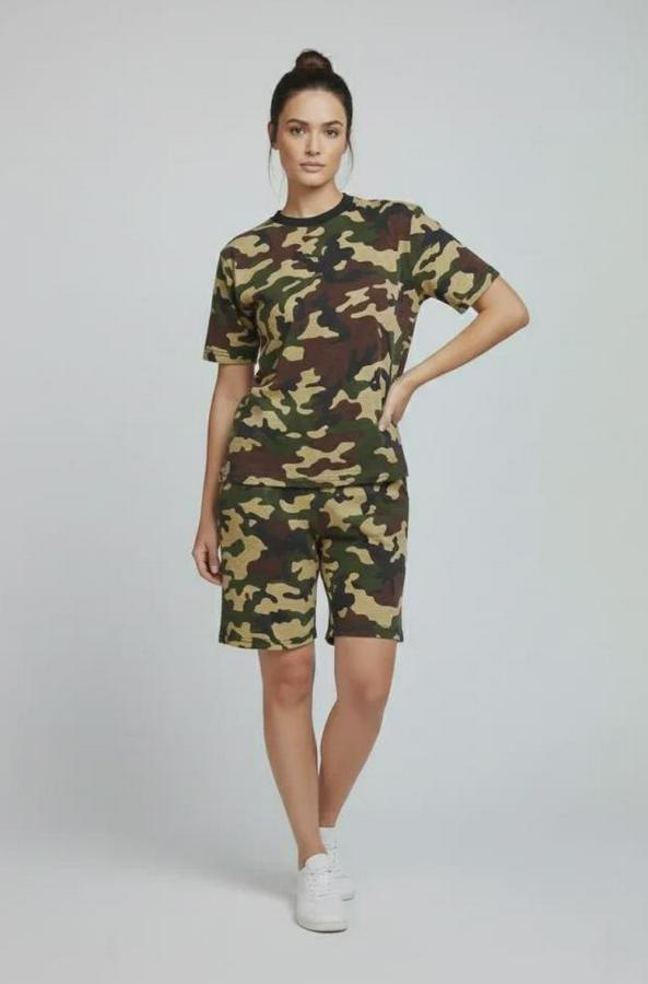 Kamuflaj Desenli Tişört Şort Takım – Günlük Rahat Kesim Yazlık 2’li Kombin - Kamuflaj