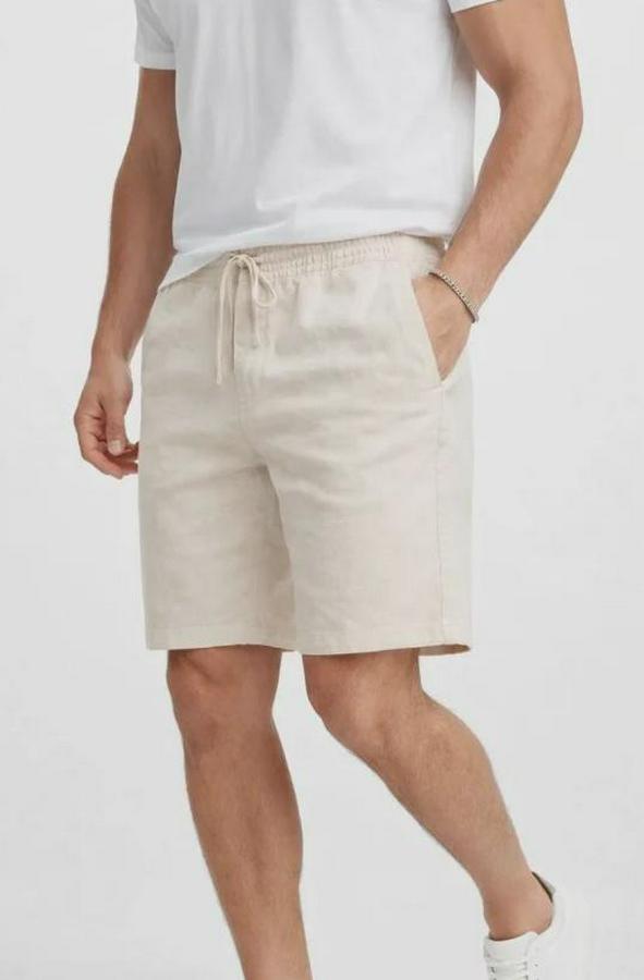 Erkek Keten Kumaş Cepli Rahat Kesim Bel Lastikli Şort - Krem