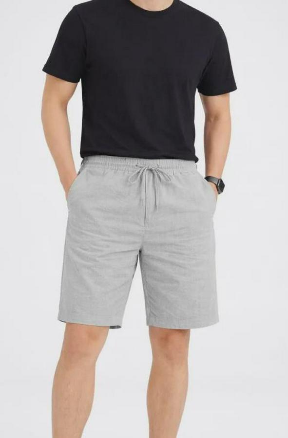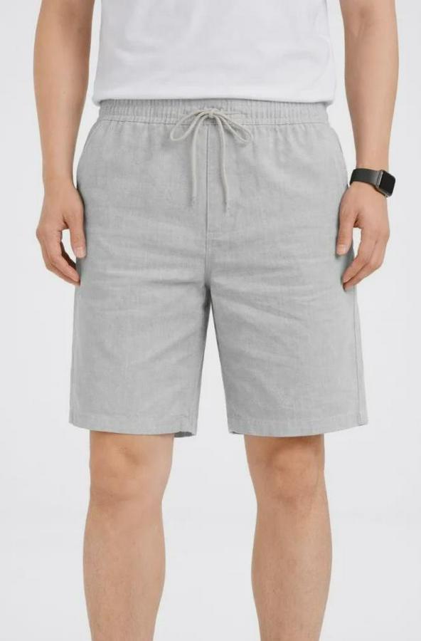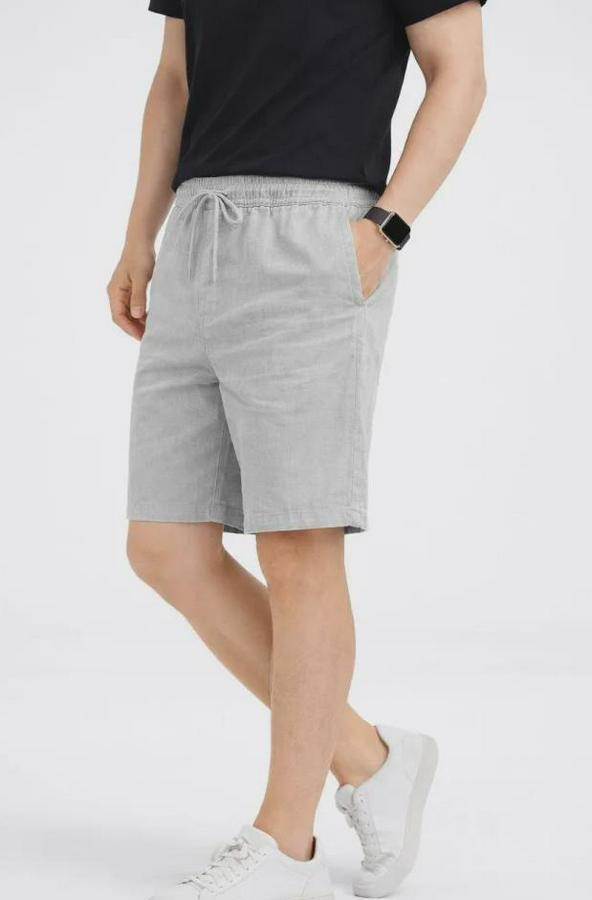 Erkek Keten Kumaş Cepli Rahat Kesim Bel Lastikli Şort - Gri