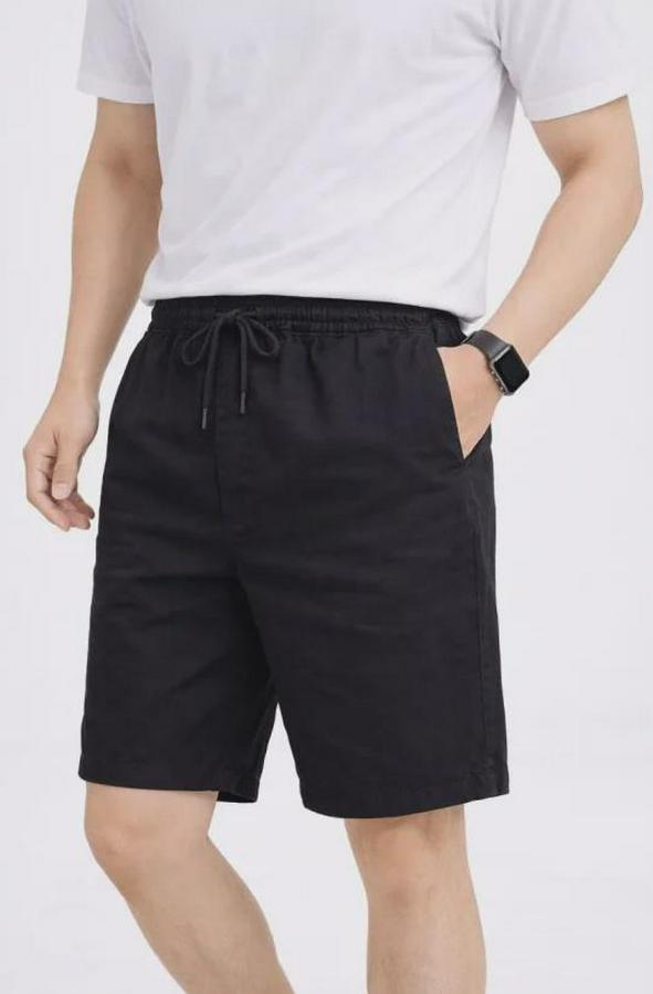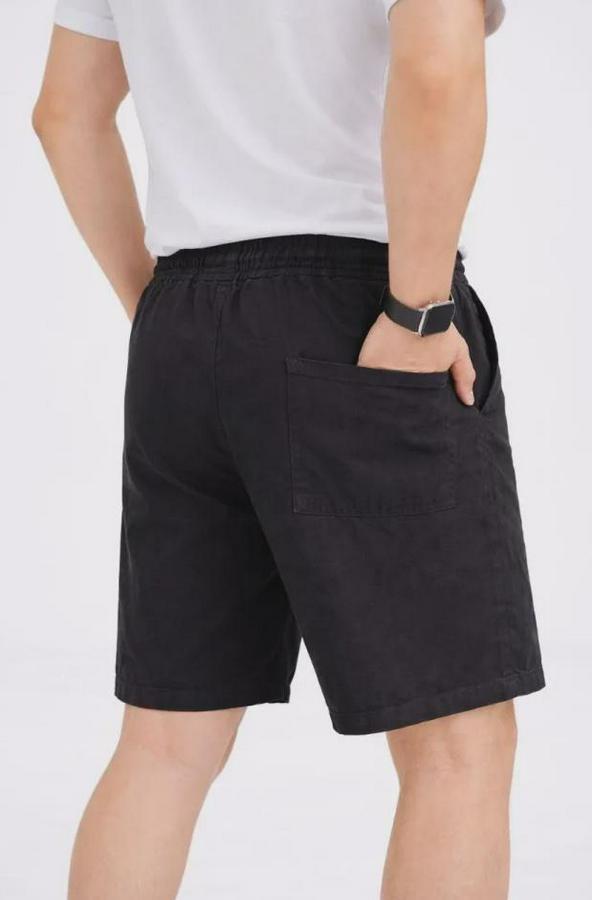 Erkek Keten Kumaş Cepli Rahat Kesim Bel Lastikli Şort - Siyah