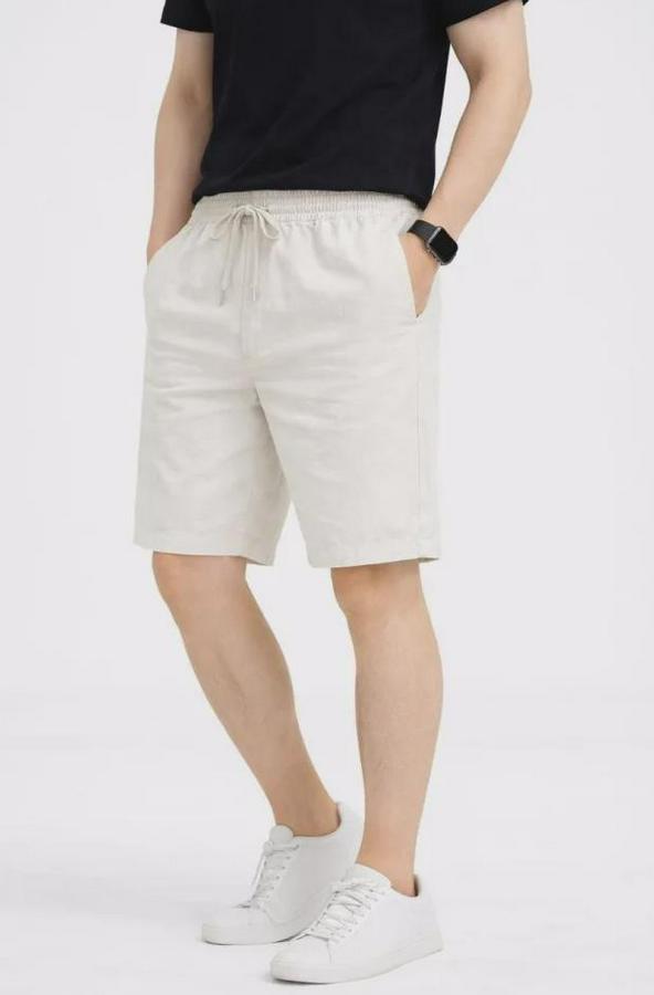 Erkek Keten Kumaş Cepli Rahat Kesim Bel Lastikli Şort - Beyaz
