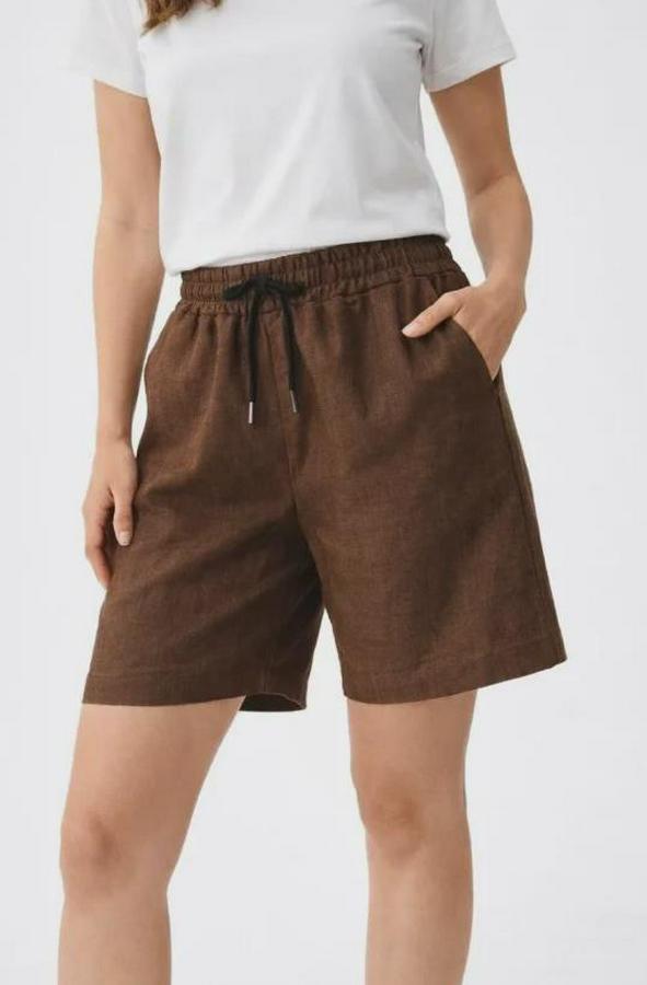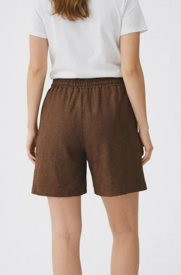 Keten Kumaş Cepli Rahat Kesim Bel Lastikli Şort - Kahverengi