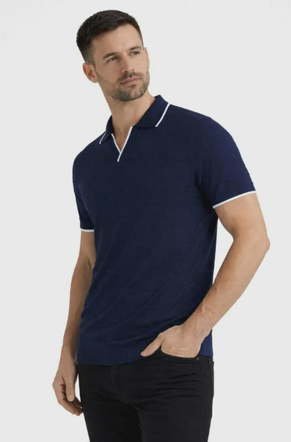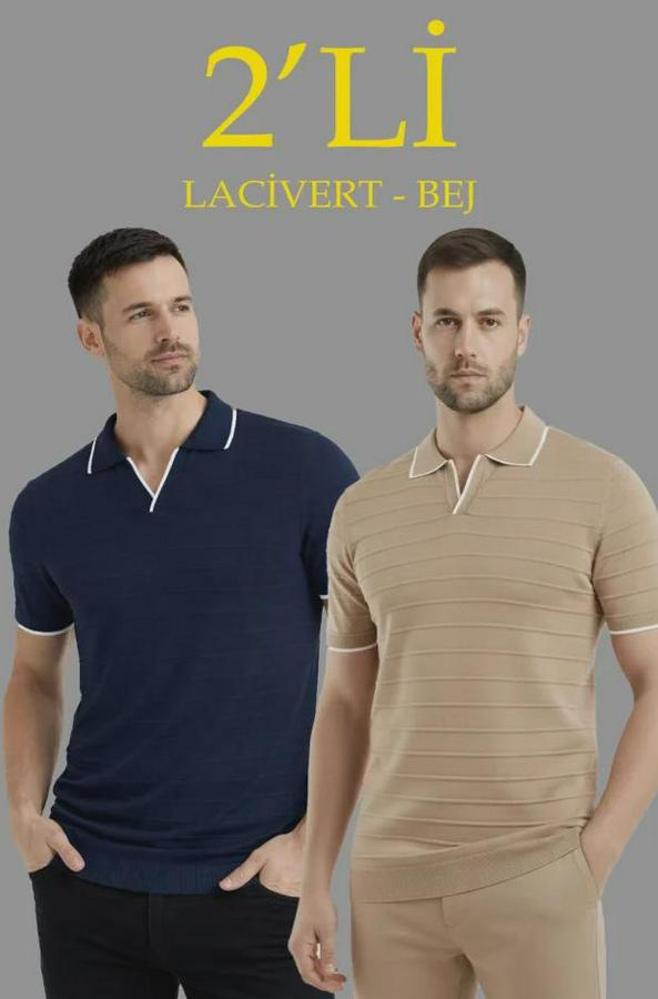 Erkek 2’li Paket Triko Yakalı Düğmesiz Açık Yaka Fitilli Kısa Kollu Regular Fit Tişört - Lacivert - Bej