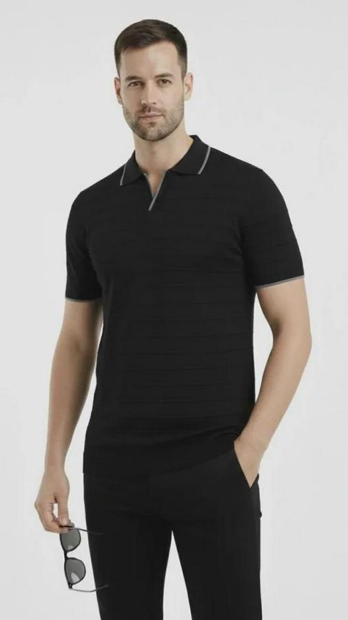 Erkek 2’li Paket Triko Yakalı Düğmesiz Açık Yaka Fitilli Kısa Kollu Regular Fit Tişört - Beyaz - Siyah