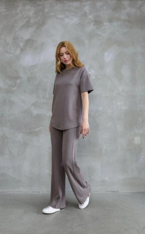 Osy Modal Yumuşak Dokulu Kumaş Bisiklet Yaka Taş Detaylı Kısa Kollu Takım - Vizyon