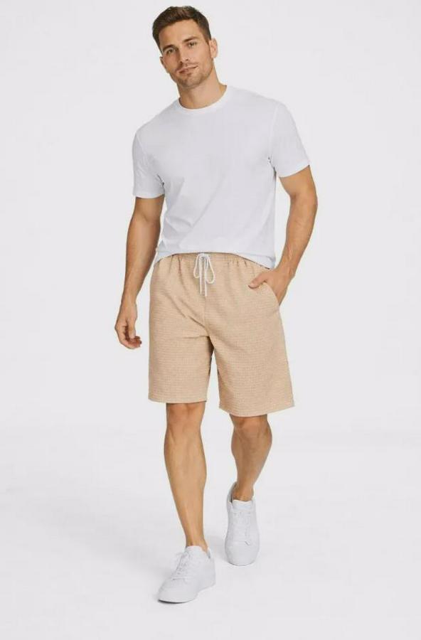 Erkek Pötikareli Şort – Beli Lastikli Bağcıklı, Cepli, Rahat Kesim Günlük Yazlık Şort - Bej