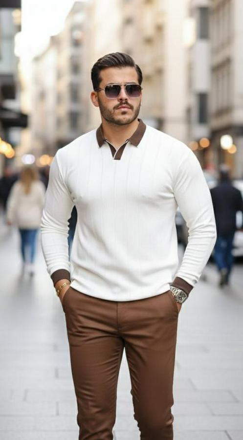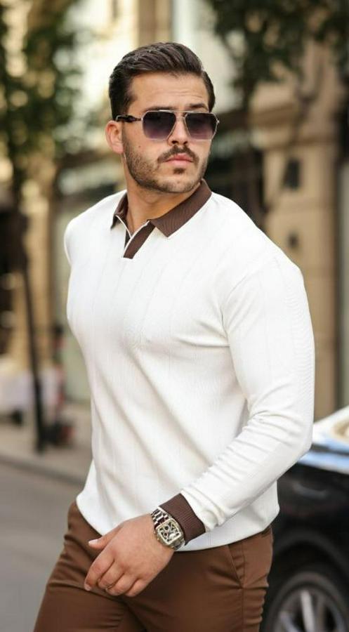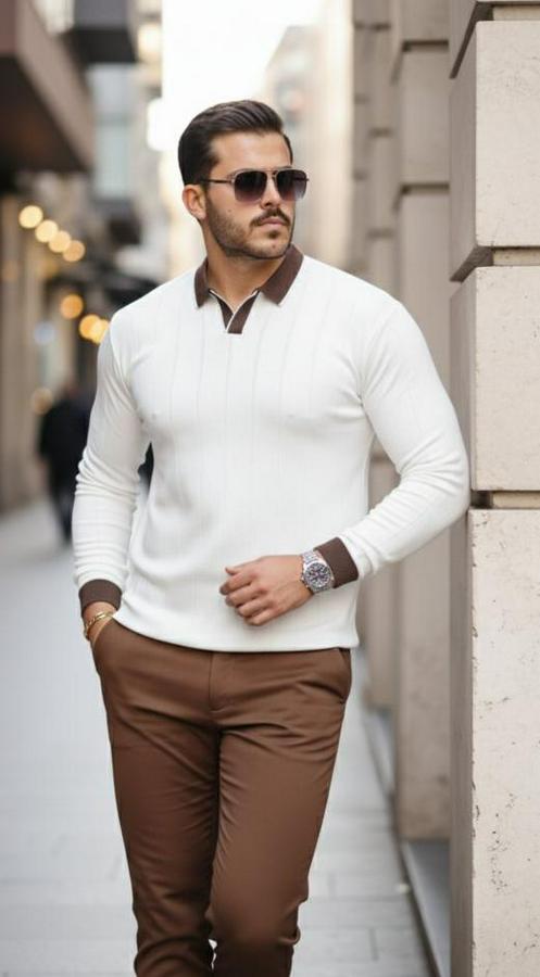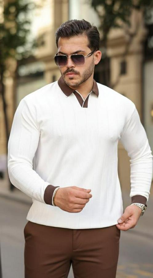 Erkek Renkli Yaka Manşet Uzun Kollu Triko