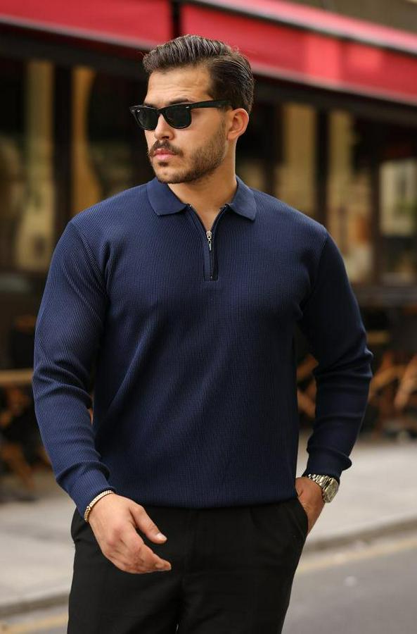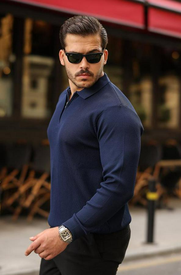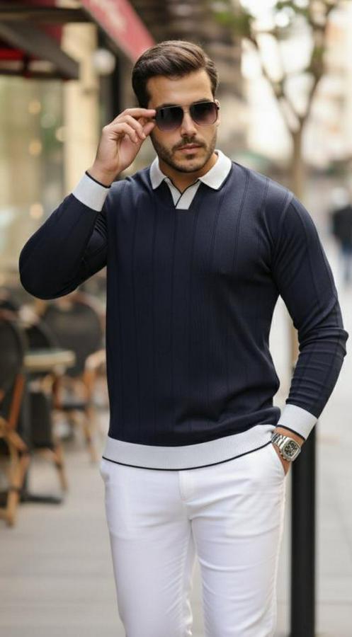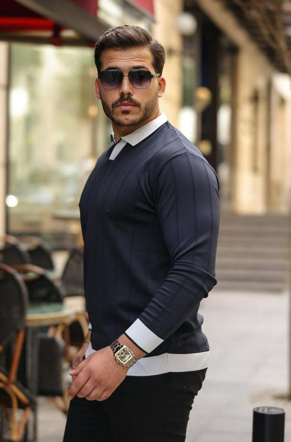 Erkek Selanik örme Yakalı Uzun Kollu Triko