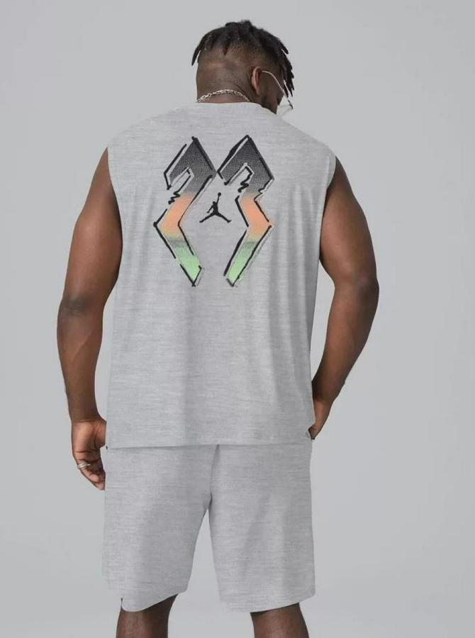 Erkek Sırt Baskılı Sıfır Kol İkili Şort Takım - Gri