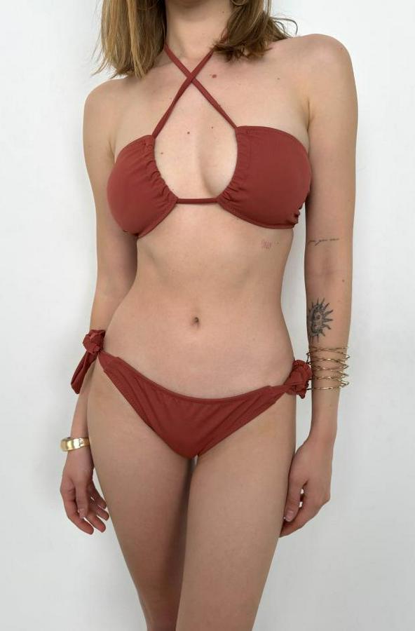 Straplez Boyun Bağlamalı Bikini Takım