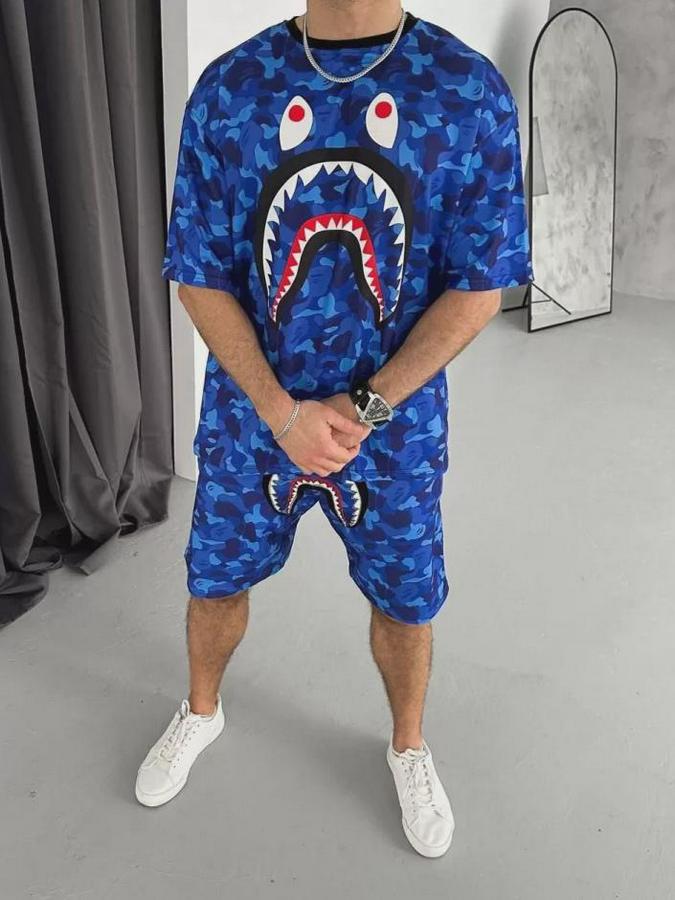 Unisex Dijital Baskılı Şortlu Takım - Mavi