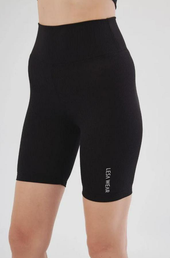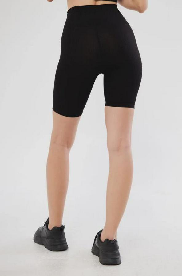 Yüksek Bel Fitilli Biker Baskılı Şort - Siyah
