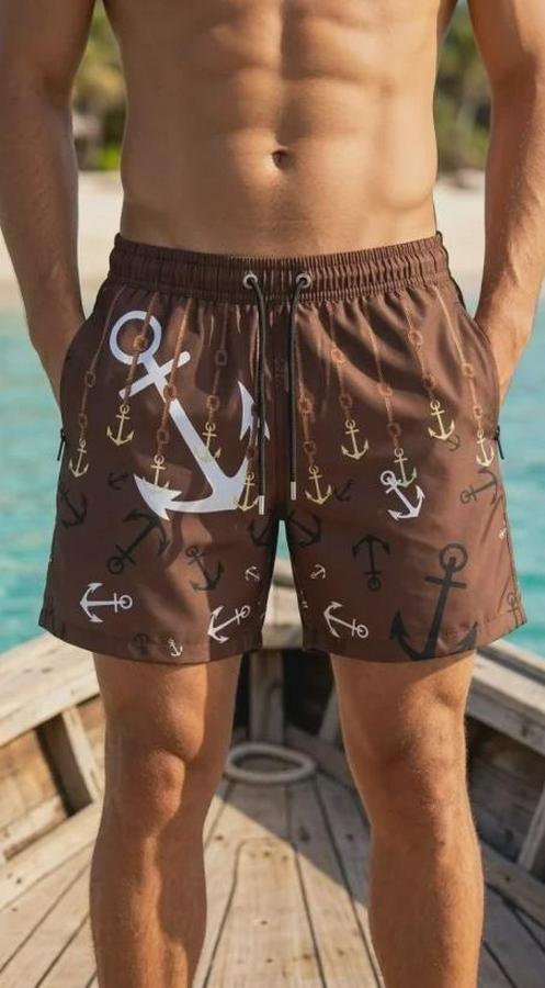 Erkek Deniz Şortu Fermuarlı Cepli File Astarlı Hızlı Kuruyan Premium - Kahverengi