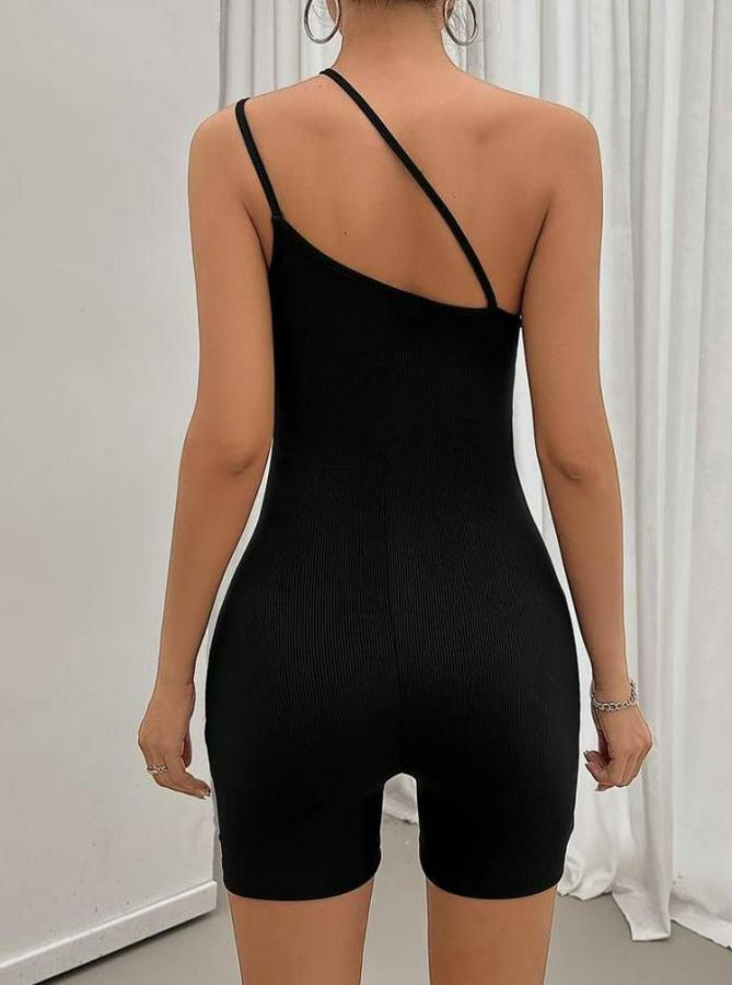 Kadın Asimetrik Askılı Mini Kaşkorse Bodycon Tulum