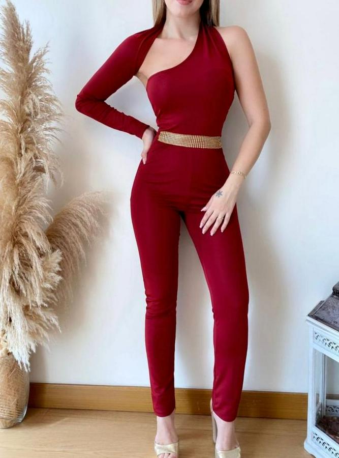 AnasayfaTüm ÜrünlerSalopet & TulumTulumAsimetrik Dekolte Ve Taş Detay Fırsat Ürün Tulum