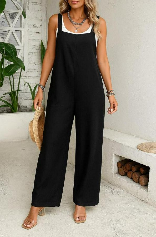 Kadın Askılı Yandan Fermuarlı Geniş Paçalı Valencia Tulum