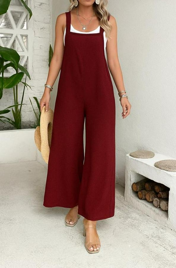 Kadın Askılı Yandan Fermuarlı Geniş Paçalı Valencia Tulum