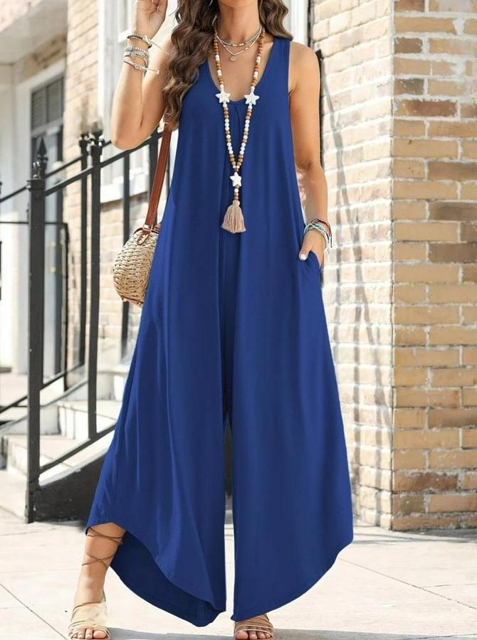 Askılı Yuvarlak Yaka Cepli Salaş Uzun Viskon Tulum