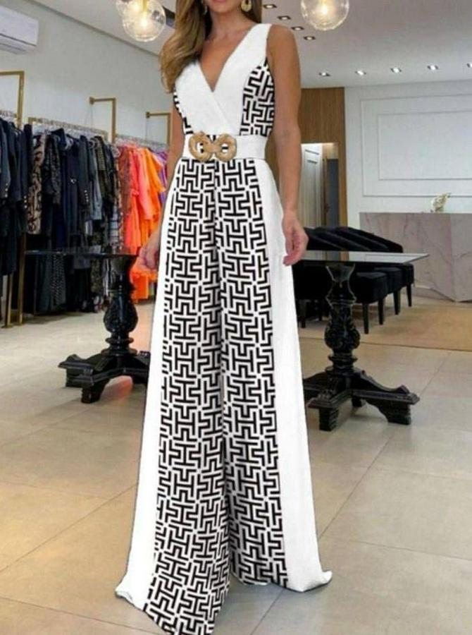 Göğüs Dekolteli Toka Detay Dijital Baskılı Tulum