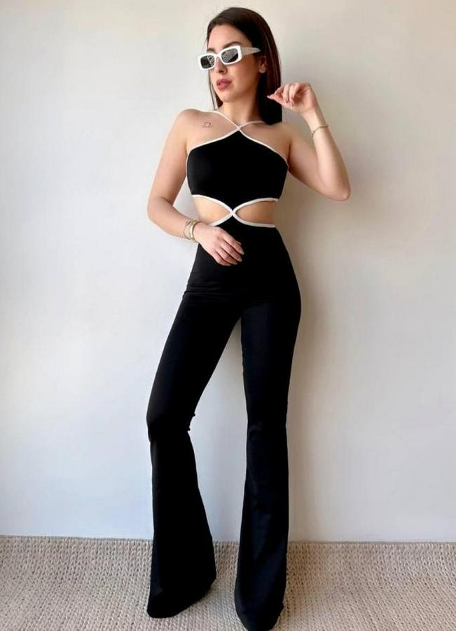 Kadın Halter Yaka Bel Dokolteli Tulum