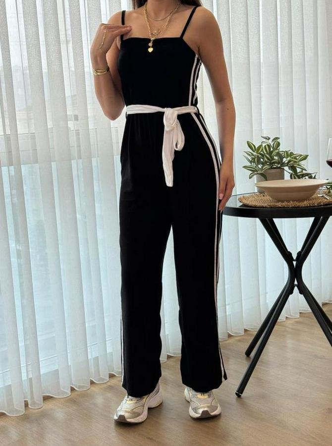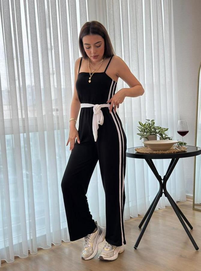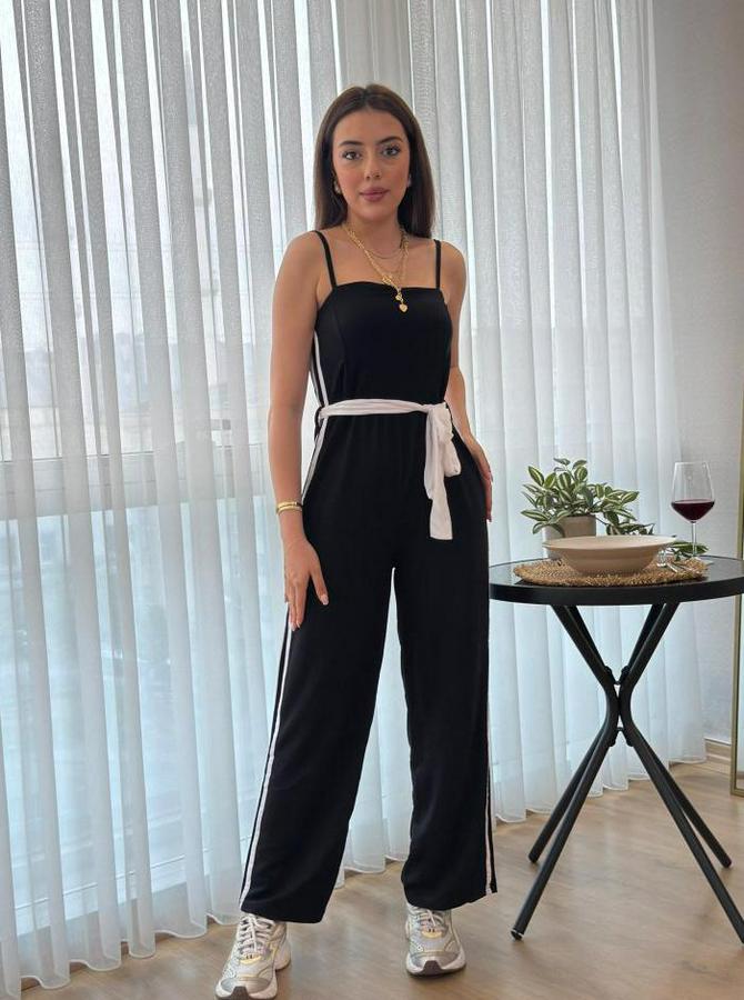 Ip Askılı Straplez Belden Kuşaklı Viskon Iki Iplik Tulum