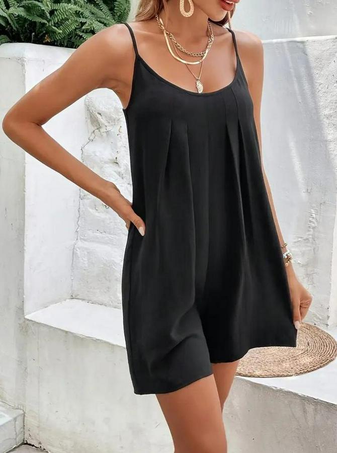 Kadın Ip Askılı Yuvarlak Yakalı Pileli Viskon Tulum