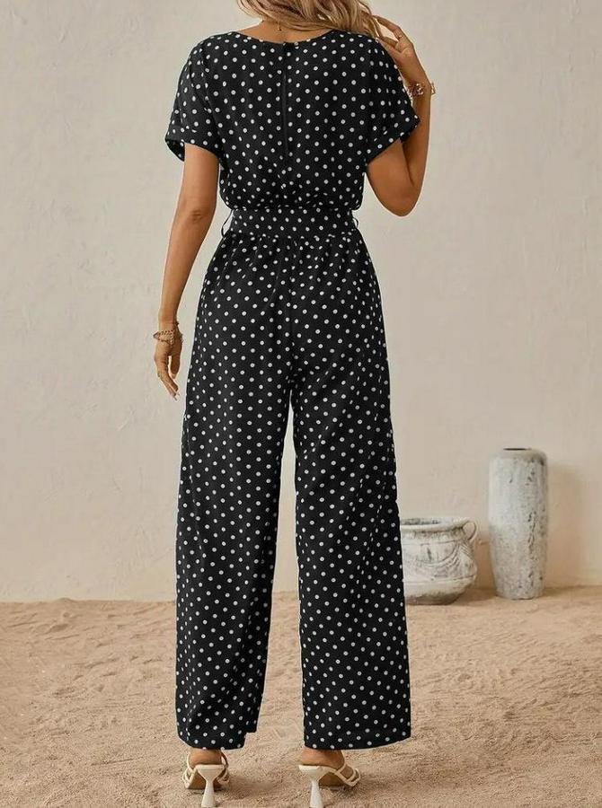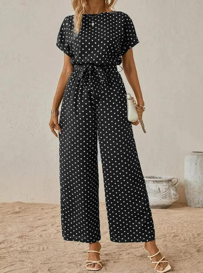 AnasayfaTüm ÜrünlerSalopet & TulumTulumKısa Kollu Kayık Yaka Belden Kuşaklı Örme Krep Tulum